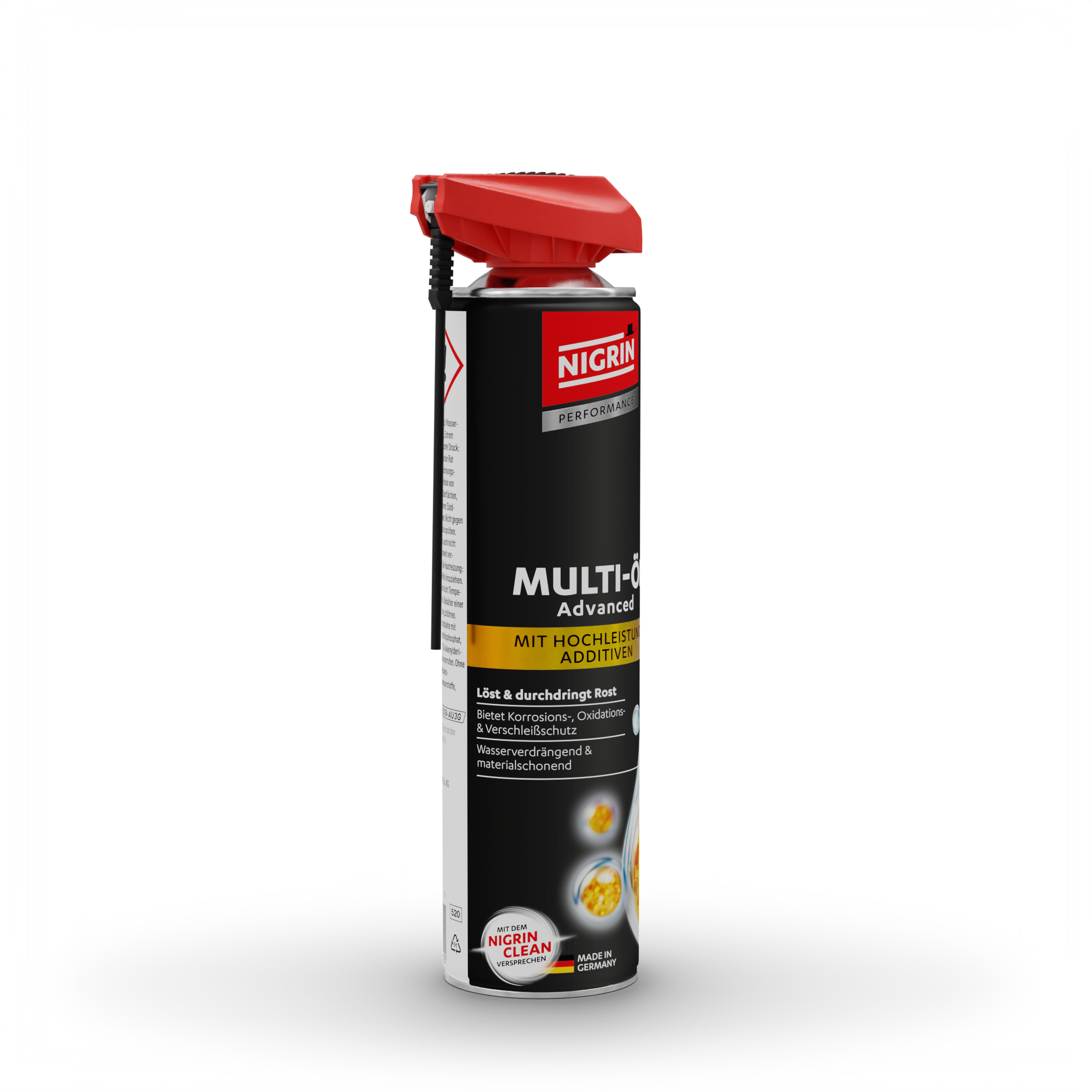 Das NIGRIN Advanced Multi-Öl kombiniert leistungsstarke Schmierfähigkeit mit herausragendem Korrosionsschutz in einem Produkt. Die mineralölbasierte Formulierung ist mit speziell entwickelten Additiven ausgestattet und schützt zuverlässig vor Verschleiß, Oxidation und Reaktion mit Buntmetallen – selbst unter hoher mechanischer Belastung.