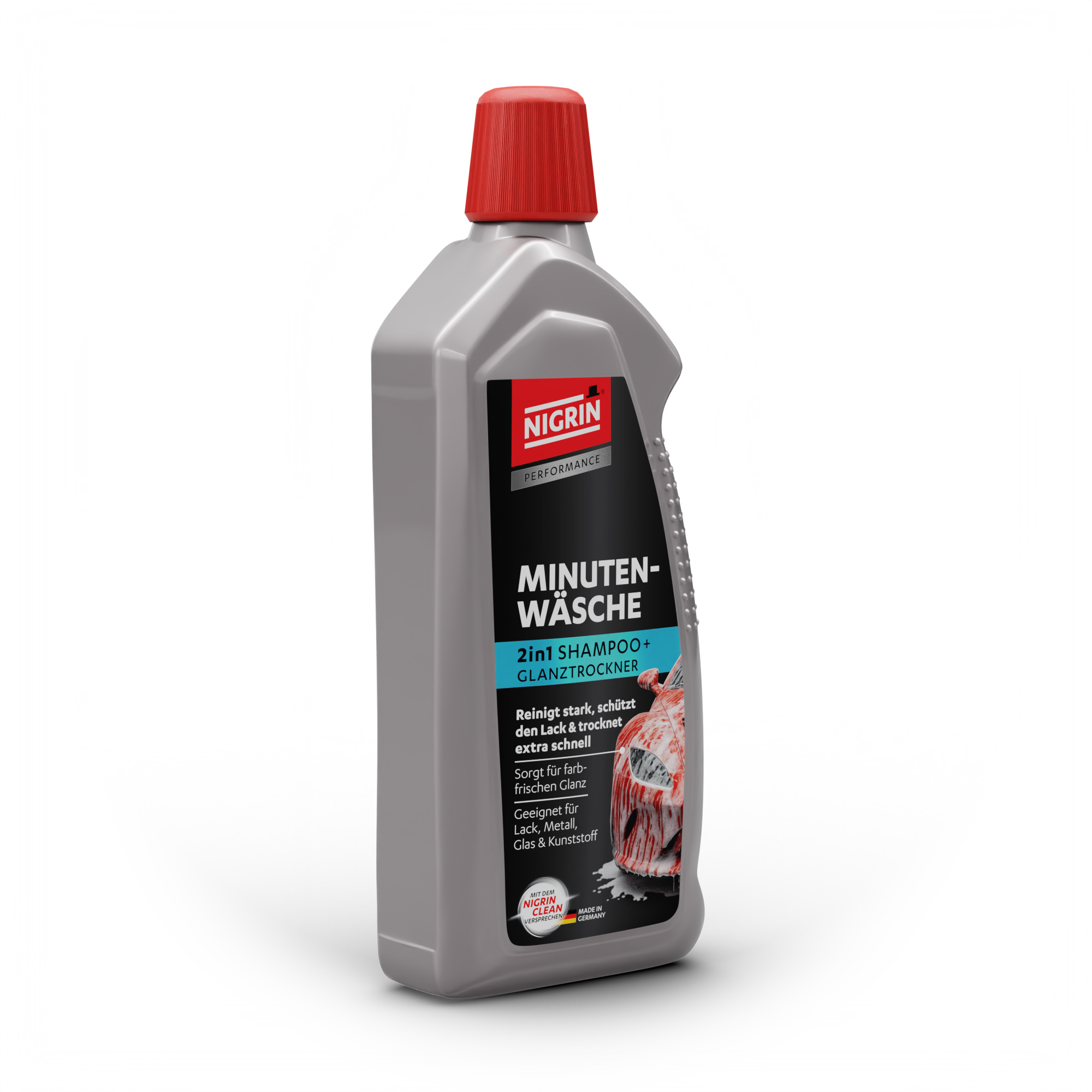 Die NIGRIN Performance Minuten-Wäsche 2in1 ist die ideale Lösung für die schnelle Außenreinigung zwischen den Hauptwäschen. Die effektive Rezeptur entfernt leichten Schmutz, Staub, Insektenreste und Straßenschleier zuverlässig von Lack, Kunststoff, Glas und Chromflächen. Gleichzeitig verleiht sie der Oberfläche einen gepflegten Glanz – ohne Streifen und ohne Rückstände.
