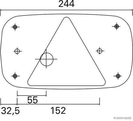 Leuchtefunktion: mit Blinklicht, mit Bremslicht, ohne Nebelschlusslicht, ohne Rückfahrlicht, mit Schlusslicht, mit Rückstrahler (dreieckig), mit Rückstrahllicht, ohne Seitenmarkierungslicht, mit Kennzeichenlicht (seitlich)