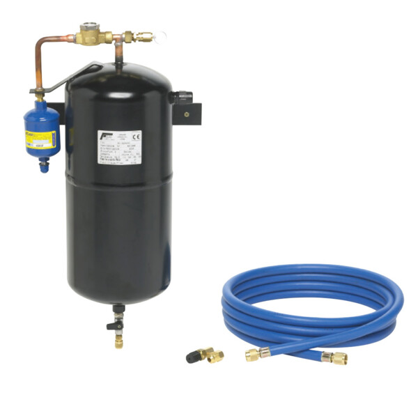 5-teilig: - 1 x Druckbehälter mit 2-Wege-Entnahmeventil - 1 x Universelle Druckbehälteraufnahme - 1 x Reinigungsfilter - 1 x Schauglas - 1 x Verbindungsleitung (Klimaanlage zu Servicegerät)
